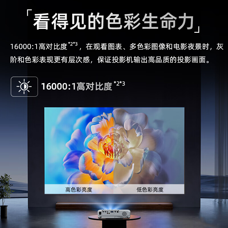 2、投影亮度:开灯也能投的很清晰外形外观:外观大气上档次投影色彩:色彩鲜明