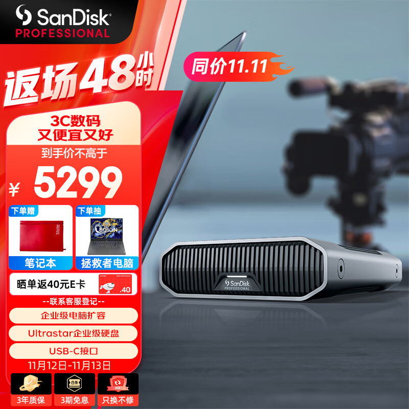 闪迪大师极客 22TB 企业级桌面移动硬盘 3.5英寸大容量 USB3.2 传输速度280MB/S 专业高速 手机直连价格:5299.00元!