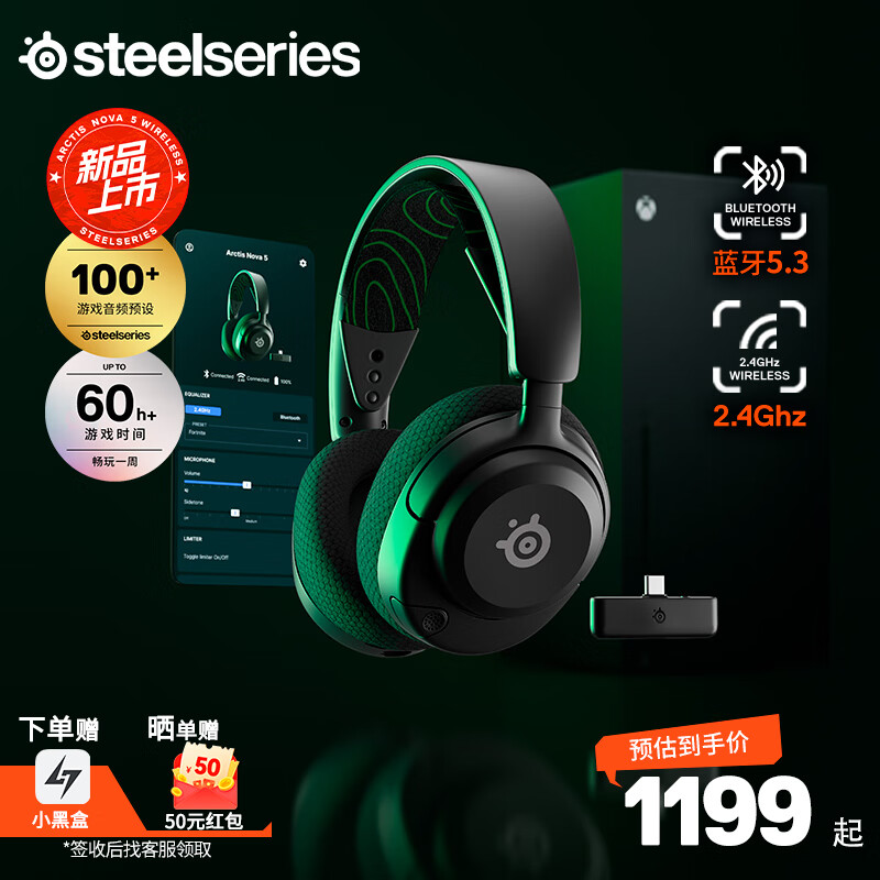 赛睿(SteelSeries)寒冰新星二代Arctis Nova 5X蓝牙/2.4G双无线头戴式电脑电竞游戏耳机 环绕声XBOX加强T1 Faker推荐价格:1199.00元!