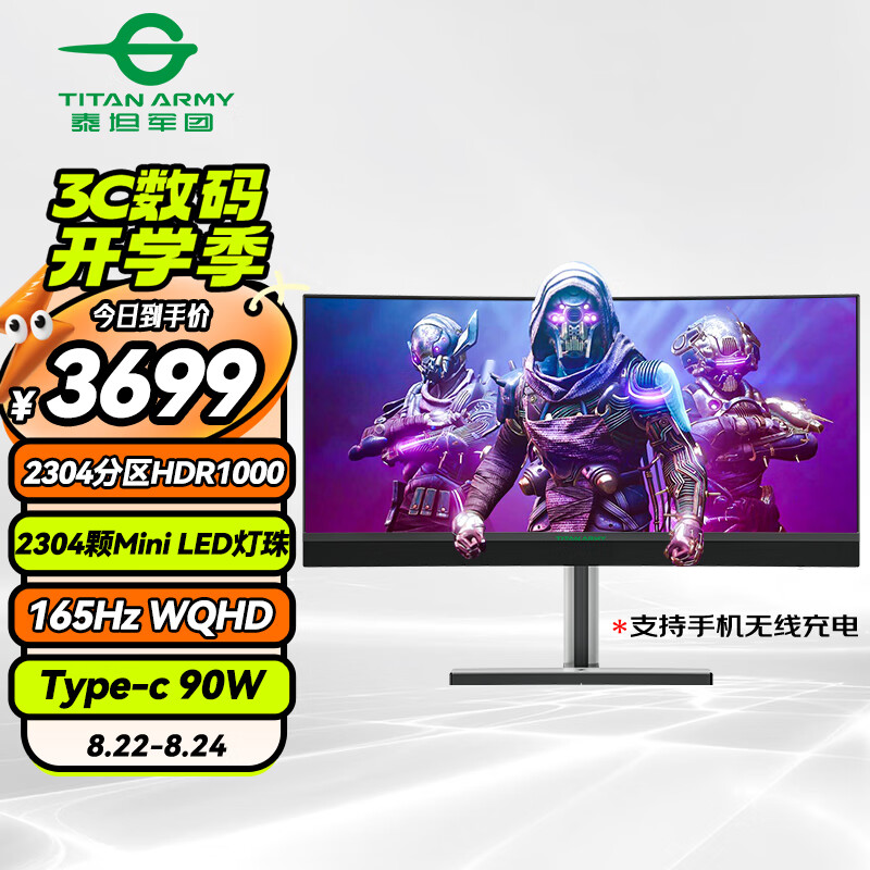 泰坦军团34英寸 QD量子点-MiniLED带鱼屏 HDR1000 165Hz 1500R曲面屏内置音箱 麦克风 KVM电竞显示器M34E7R价格:3999.00元!