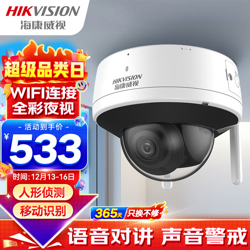海康威视无线监控摄像头家用400W超高清手机远程监控WIFI室内室外监控器可对话户外红外夜视K54H-IWT价格:562.00元!