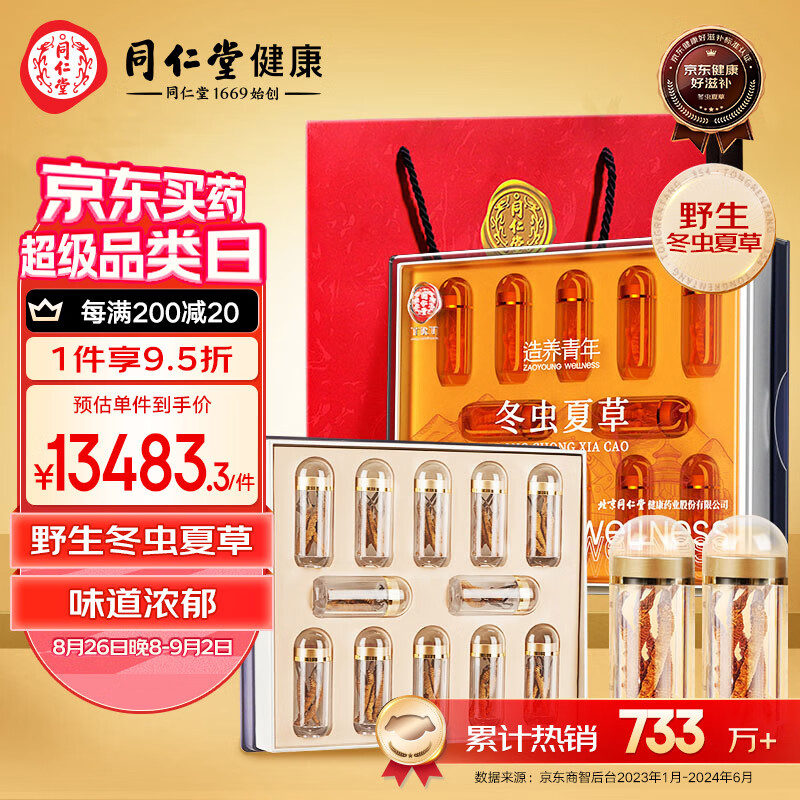 【正宗同仁堂品牌】北京同仁堂野生冬虫夏草约3根/g 25克礼盒装约75根 中秋节高端养生礼品补品送礼送人长辈价格:15856.00元!