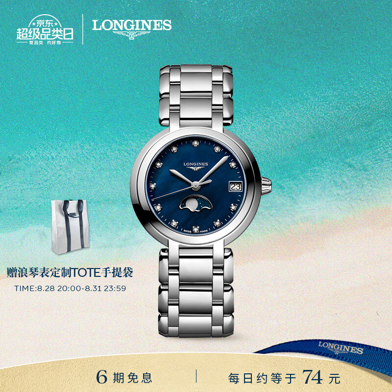 浪琴(LONGINES)赵丽颖推荐 瑞士手表 心月系列 月相石英钢带女表L81154986价格:13300.00元!