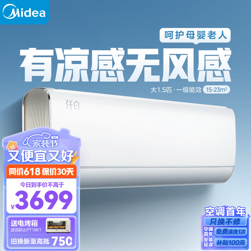 美的(Midea)新一级 纤白 大1.5匹 智能家电 变频冷暖 独立除湿 壁挂式空调挂机 舒适无风感 KFR-35GW/N8MWD1价格:3699.00元!