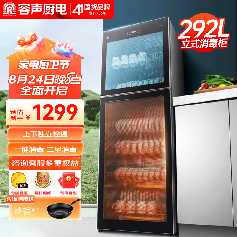 容声(RONGSHENG)消毒柜家用 立式消毒碗柜 大容量 商用消毒柜 双门台式餐具厨房碗筷消毒柜380-RQ230(A)价格:1299.00元!