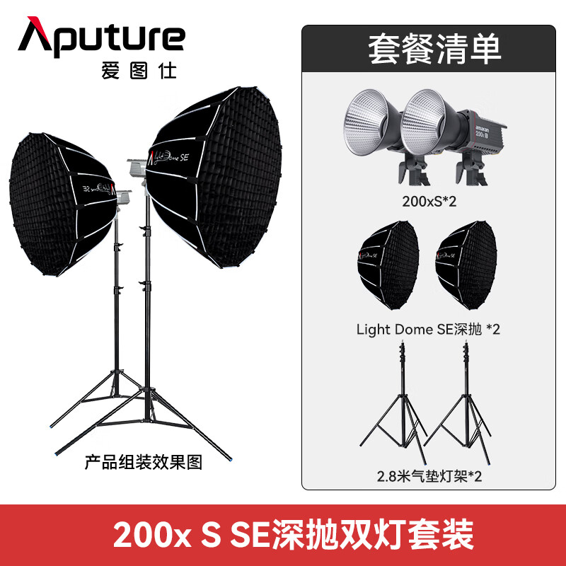 爱图仕(Aputure)200x S 补光灯200W影棚直播间视频录像可变色温绿幕背景LED影视灯 200x S SE深抛双灯套装价格:5696.00元!