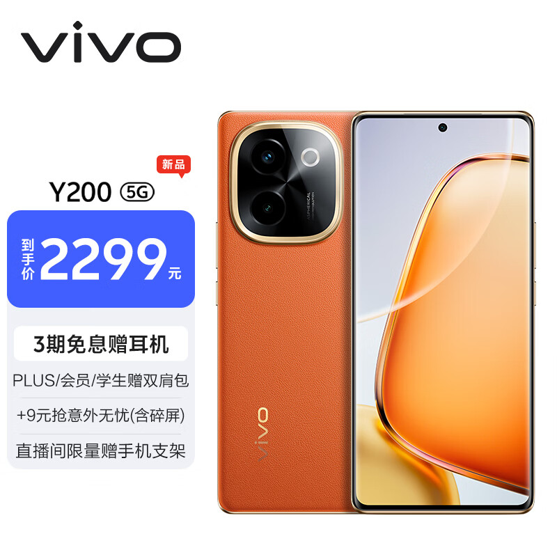 vivo Y200 12GB+512GB 赤橙 轻薄6000mAh+80W 120Hz金刚曲面屏 高通代骁龙6 拍照 手机价格:2299.00元!