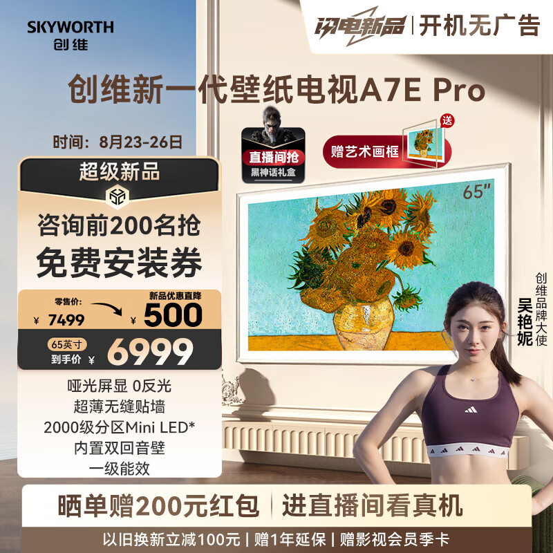 创维壁纸电视65A7E Pro 65英寸 嵌入式 超薄壁画 mini led 哑光屏显 艺术电视机 A7D Pro升级款价格:7499.00元!