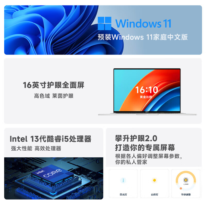 攀升暴风龙P3 Pro 16英寸低蓝光护眼屏学生设计游戏办公轻薄便携笔记本电脑 酷睿i5-13500H 32G 1T固态价格:4199.00元!