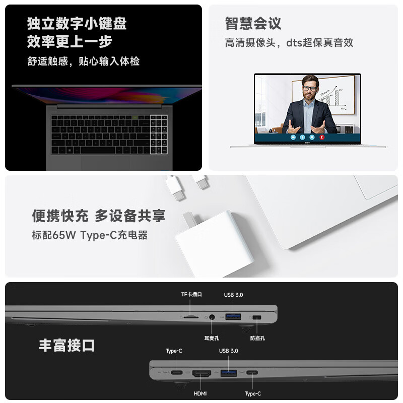 3、整机1.5Kg左右,很轻薄,外观也是很喜欢。试用了下,开机快,一般办公,系统很流畅,有护眼功能,Tapec充电很方便,外出减少多带电源重量,总体很满意!