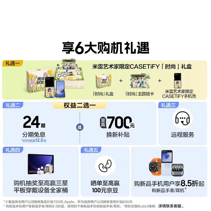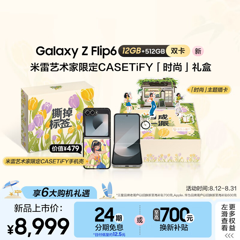 三星(SAMSUNG)Galaxy Z Flip6 AI手机 5000万像素 双卡 折叠屏手机 米雷艺术家限定「时尚」礼盒 12+512G 星夜银价格:8999.00元!