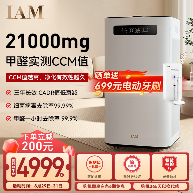 IAM消毒空气净化器除甲醛雾霾细菌过敏源 家用负离子 甲醛数值显示 炭魔方3年长效分解甲醛 M8 Pro价格:5199.00元!