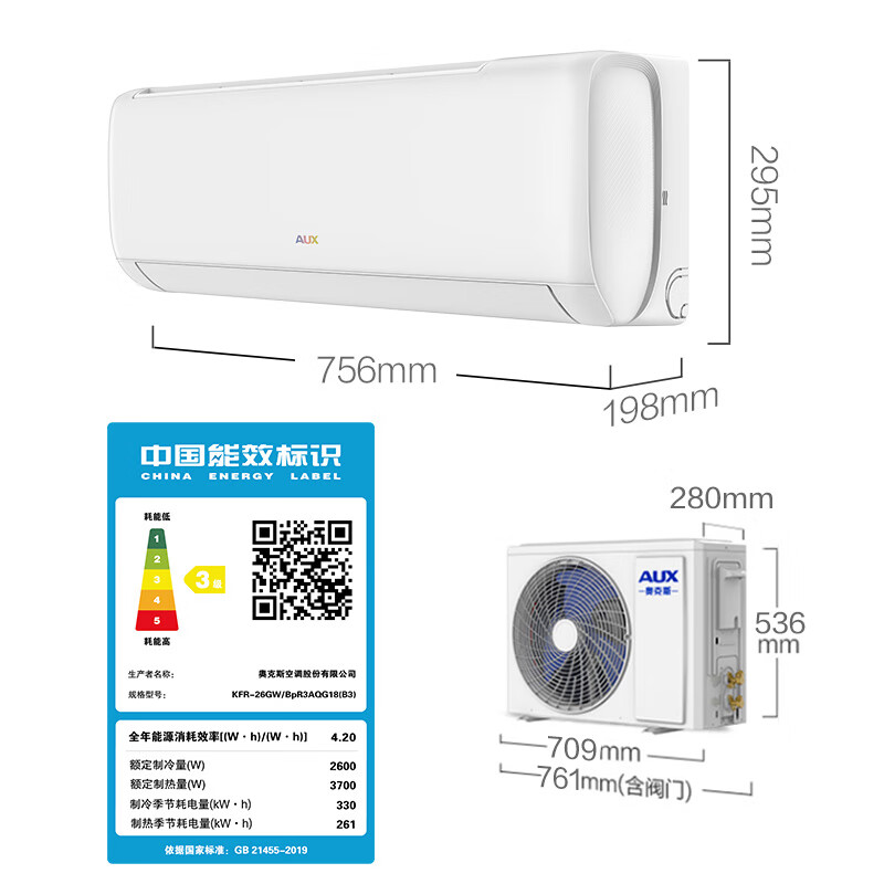 奥克斯KFR-26GW/BpR3AQG18(B3)配置参数: