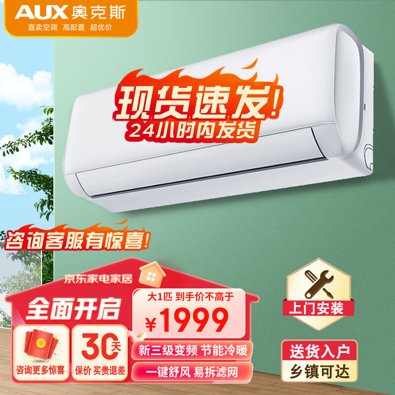 奥克斯(AUX)空调挂机 1匹新能效 家用变频冷暖 壁挂式空调 京福KFR-26GW/BpR3AQG18(B3)[家电]价格:1999.00元!