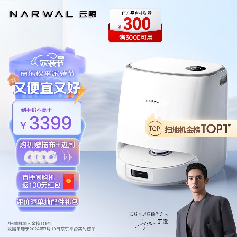 云鲸扫地机器人J4 扫拖洗烘一体自动清洗集尘全自动 洗地机洗拖一体 吸尘器拖地机擦地机器人 水箱版价格:3699.00元!
