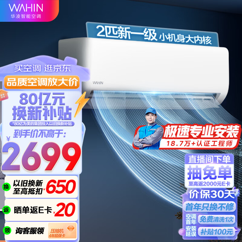 华凌空调 2匹 超省电 新一级能效 变频冷暖 智清洁壁挂式空调挂机除湿 智能家电KFR-46GW/N8HA1Ⅱ价格:2699.00元!