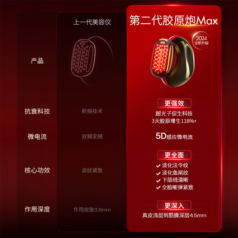 极萌第二代胶原炮Max美容仪【专区淡纹】淡纹嫩肤家用面部仪器生日礼物教师节礼物送女生送妈妈极夜红价格:4399.00元!