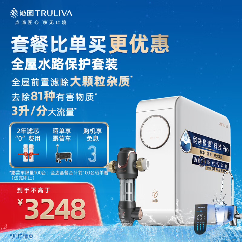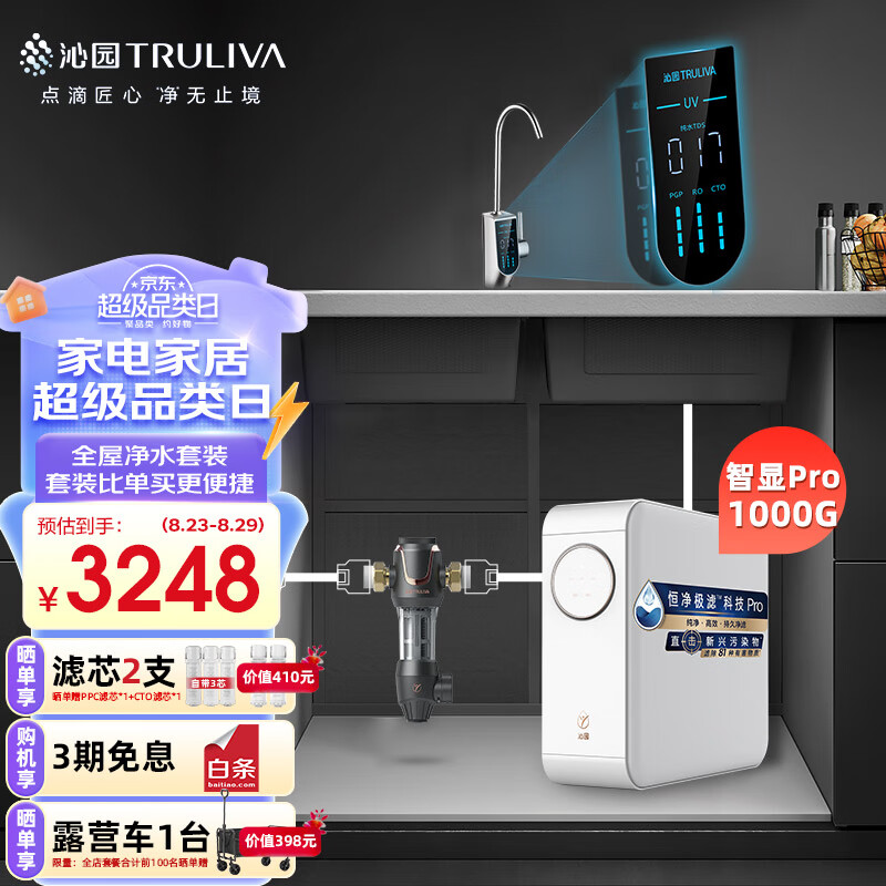 沁园(TRULIVA)小白鲸Pro1000G智能龙头二件套装 净水器UR-S51076i+前置过滤器P-A5510(黑) 全屋净水套装价格:3248.00元!