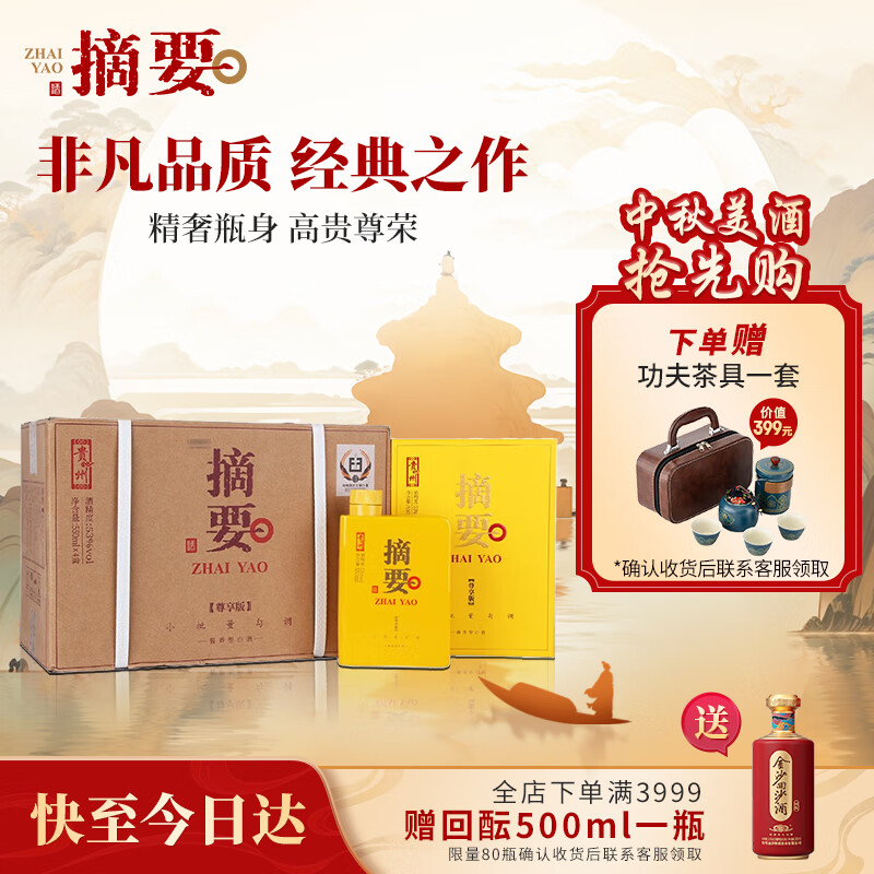 金沙摘要尊享版高端酱香型53度白酒550ml*4整箱装【中秋送礼】价格:3600.00元!