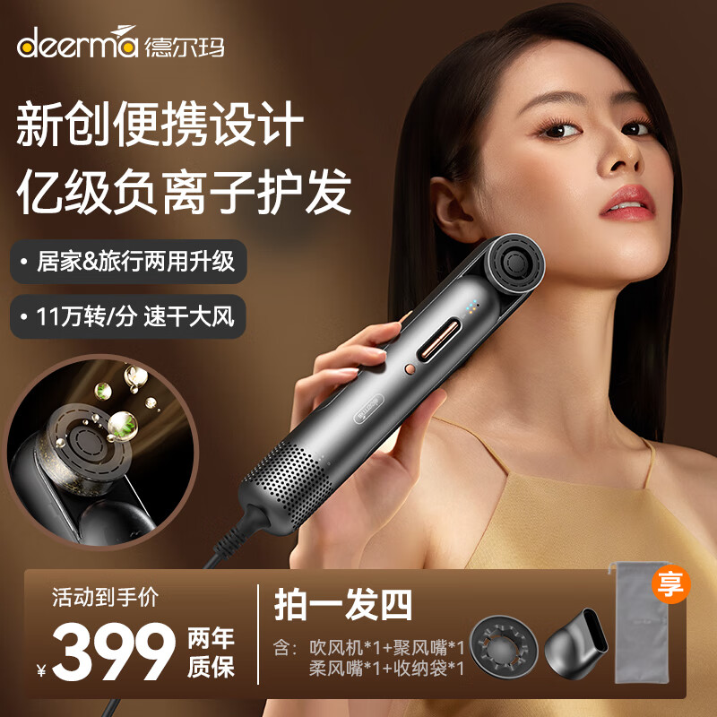 德尔玛(Deerma)吹风机家用电吹风筒新一代大功率高速吹风机负离子大风力速干低噪音CF20价格:459.00元!
