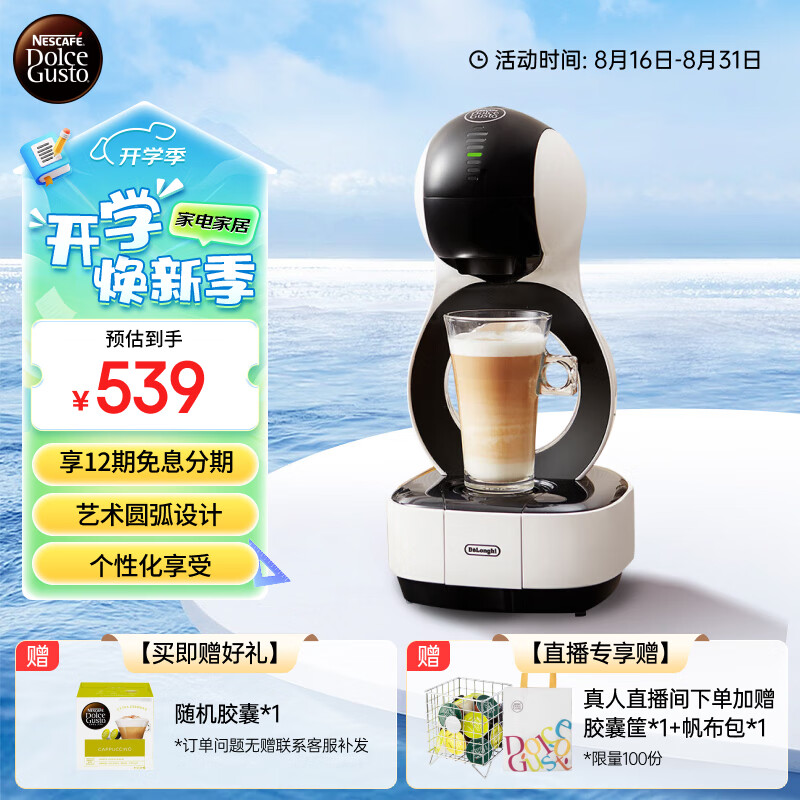 DOLCE GUSTO雀巢 全自动胶囊咖啡机 Lumio云朵白 家用 办公胶囊机价格:1190.00元!