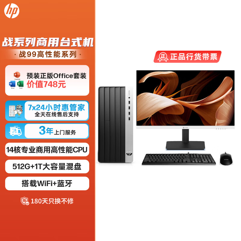惠普(HP)战99 台式电脑主机(酷睿13代i5-13500 16G 512G+1T)27英寸显示器 WiFi蓝牙 14核高性能CPU价格:4199.00元!