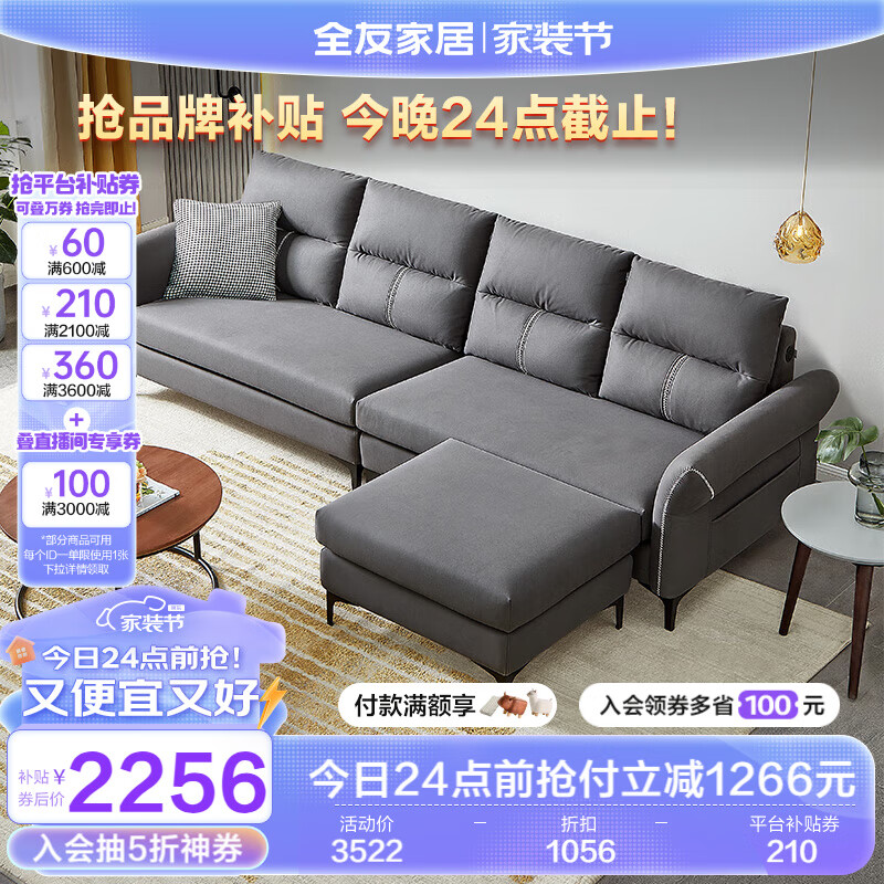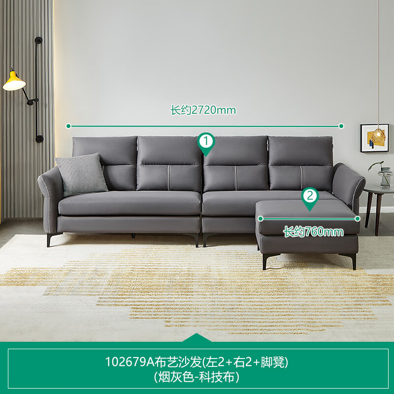 全友家居 现代简约功能科技布艺可拆洗储物小户型直排沙发客厅102679价格:3522.86元!