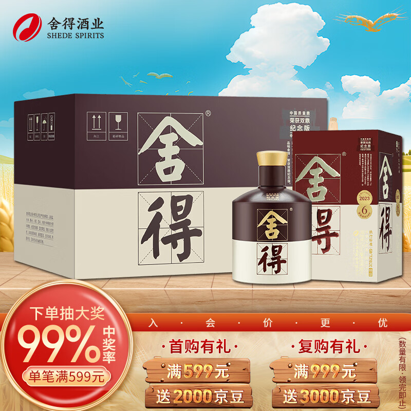 舍得 品味舍得(双鼎纪念款)浓香型白酒52度500ml*6瓶整箱中秋节礼物价格:2868.00元!