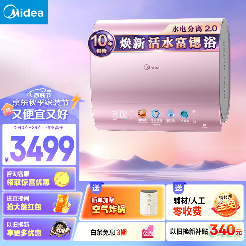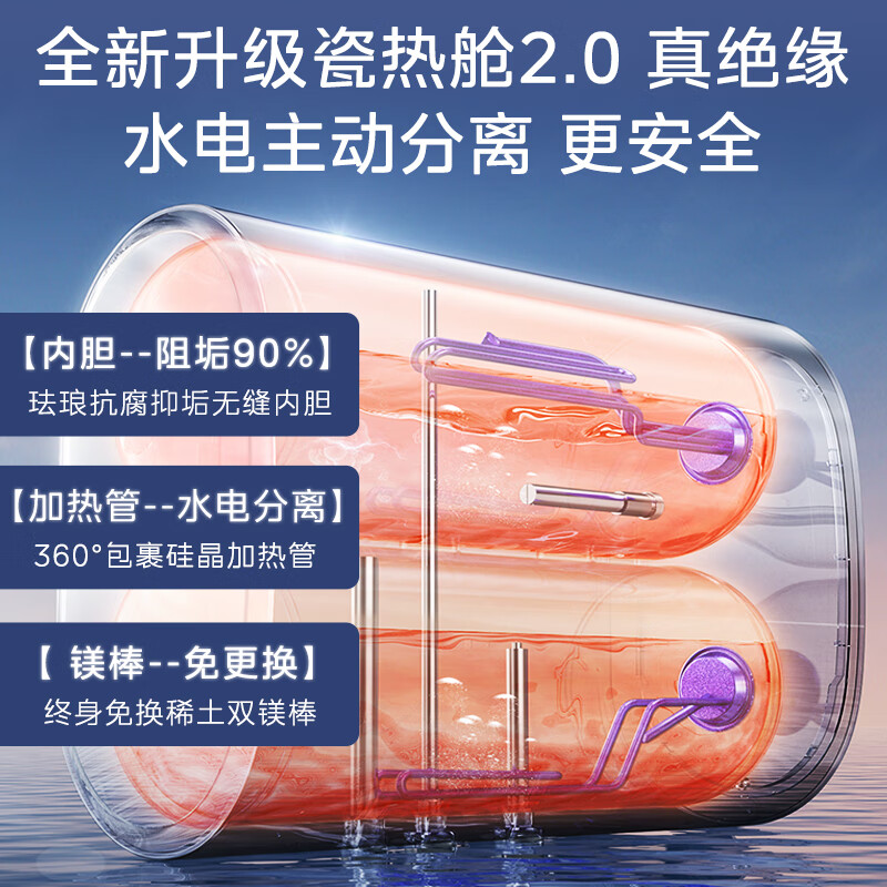 美的(Midea)富锶活水洗热水器 玲珑双胆超薄60升扁桶电热水器3300W水电分离瓷热舱一级能效F6033-UW9以旧换新价格:3799.00元!