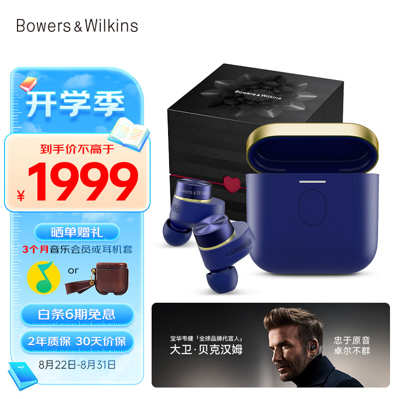 宝华韦健Pi7二代礼盒版 真无线主动降噪HIFI运动蓝牙耳机 B&W音乐入耳式Pi7s2 【贝克汉姆代言】湛金蓝价格:1999.00元!