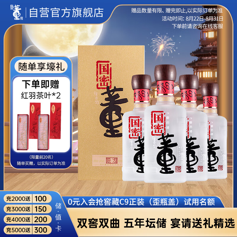 董酒国密系列 国密方印 董香型白酒 54度 500ml*4整箱装 中秋送礼价格:2599.00元!