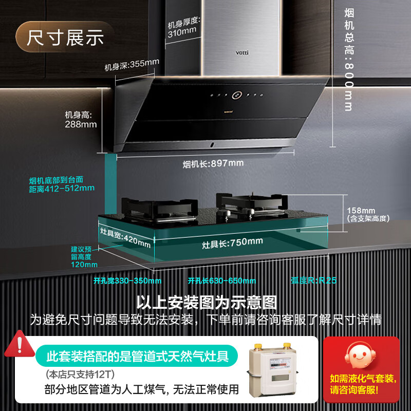 4、烟机安装的高度刚刚好,师傅安装完以后插电试用了一下感觉吸力很大,灶具和油烟机外观也很漂亮,单手就可以操作。噪音也没有那么大。送货也及时。