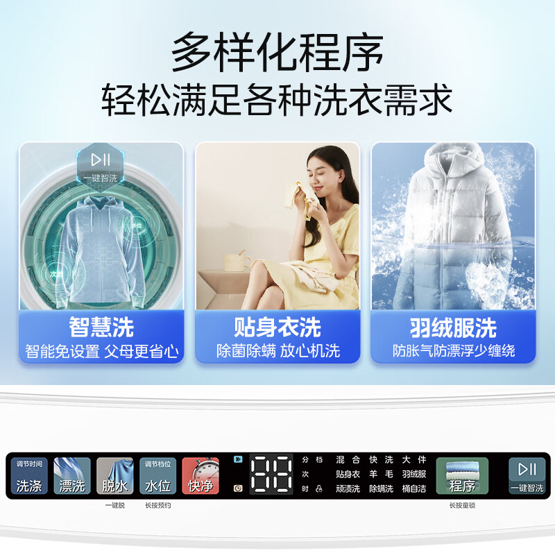 4、外形外观:款式新颖独特洗净效果:洗涤效果很不错除菌效果:衣服穿起来很舒服,干爽舒适容量大小:家庭用的确实很实用方便快捷以旧换新:以旧换新非常给力,值得一试哦,换起换起,走起走起!