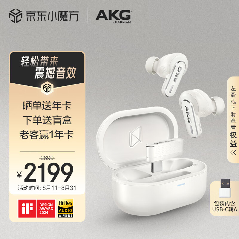 AKG N5 自适应主动降噪真无线蓝牙耳机入耳式智能降噪通话耳麦超长续航高音质商务运动音乐耳机白色价格:2699.00元!
