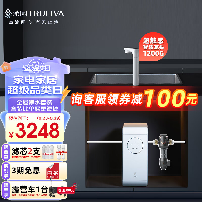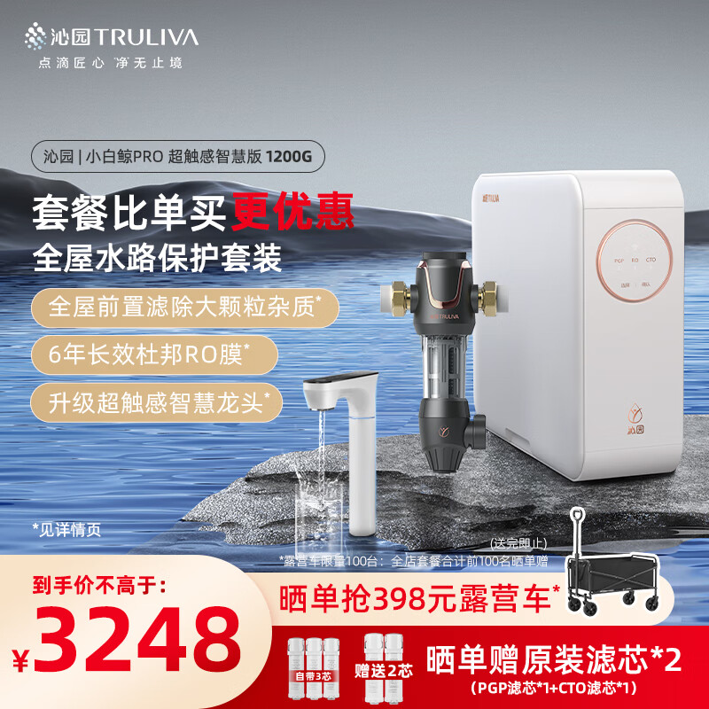 沁园(TRULIVA)触控屏 小白鲸PRO大通量1200G 二件套装 净水器UR-S51298+前置过滤器P-A5510价格:3248.00元!