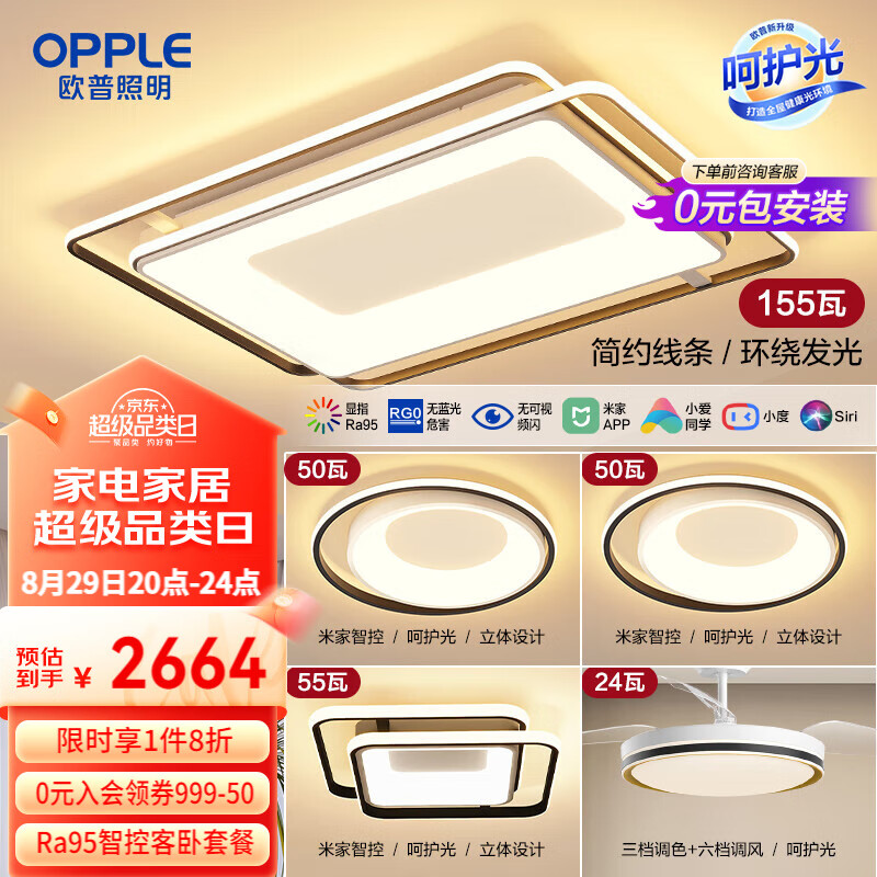 欧普(OPPLE)吸顶灯客厅大灯护眼智能LED照明灯具灯饰简约现代大气套餐1呵护光价格:3330.00元!