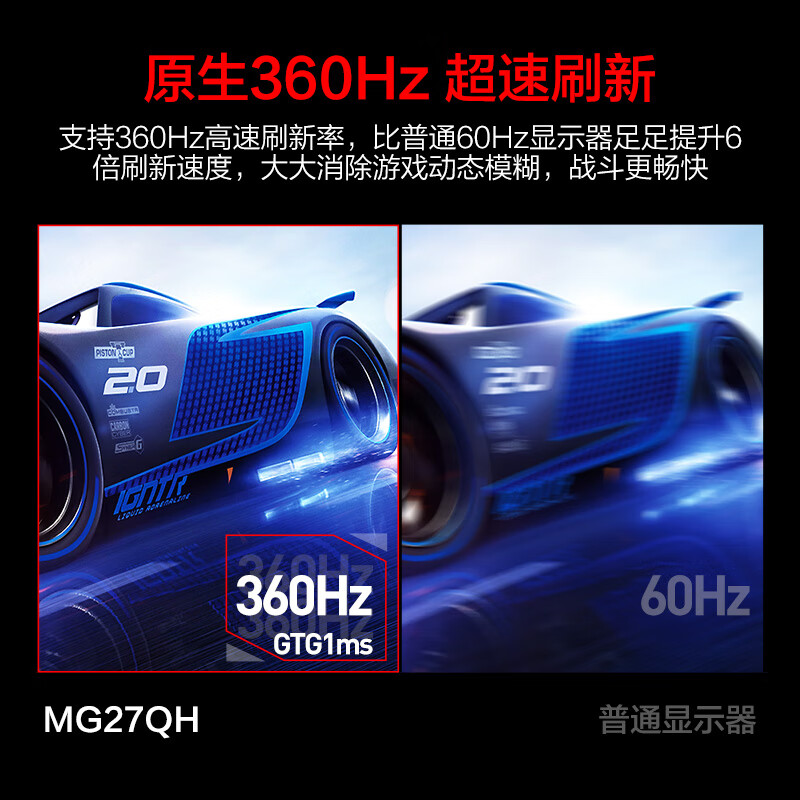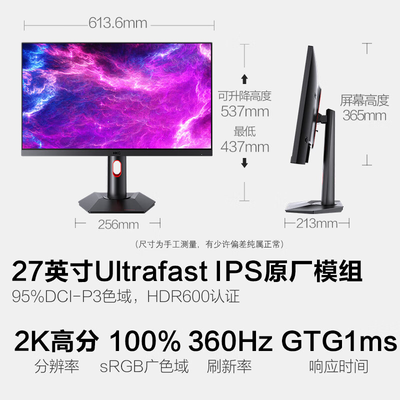 HKC 27英寸 2K 360Hz Ultra Fast IPS 1ms响应HDR600广色域10bit屏幕 旋转升降游戏电竞显示器 MG27QH价格:5999.00元!