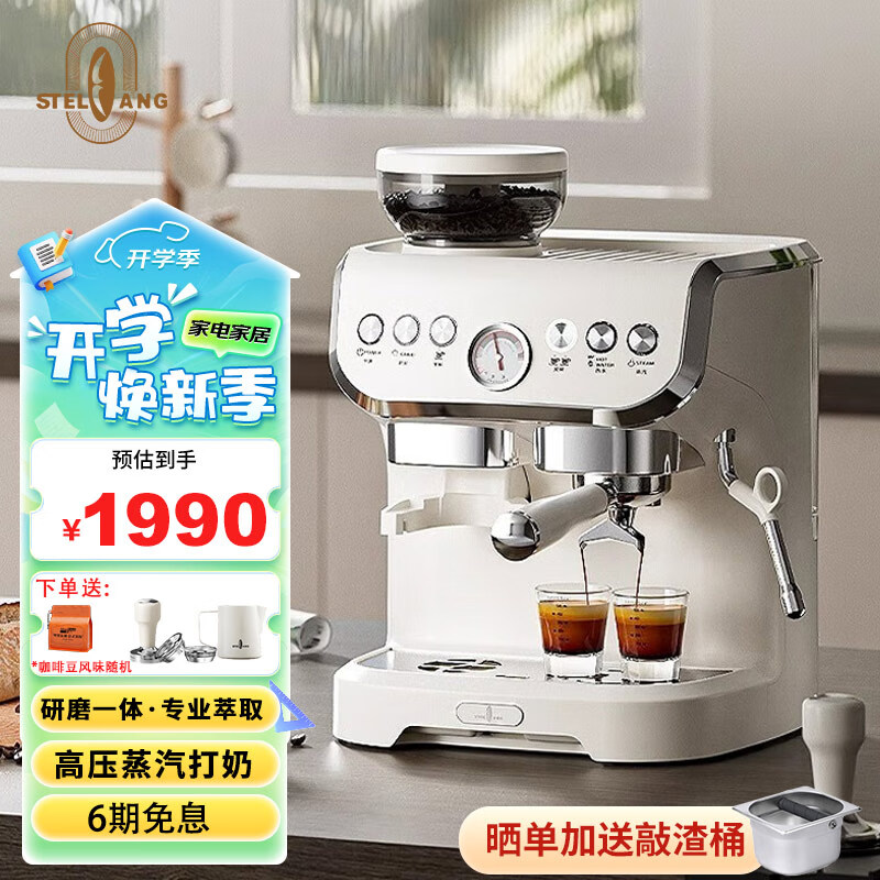 雪特朗意式半自动咖啡机家用磨豆机奶泡机研磨一体 可视显示价格:1984.00元!