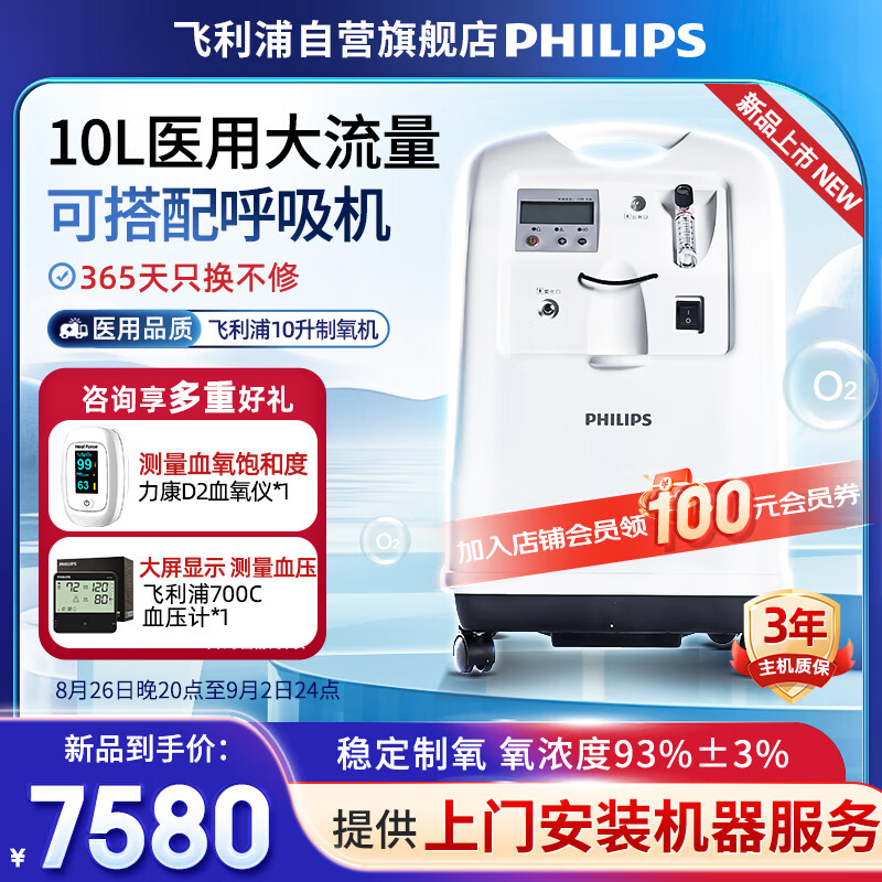 飞利浦(PHILIPS)10L升医用制氧机家用吸氧机氧气机带雾化家庭老人搭配呼吸机使用 家用老人大流量吸氧机价格:7980.00元!
