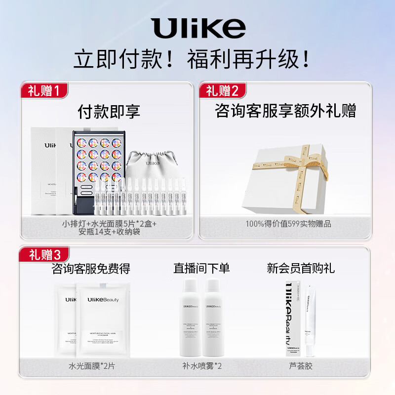 2、在直播间抢到了ulike白皇后面罩的活动,尊滴太棒啦!一直很喜欢ulike家的东西,从他们家上新蹲到现在~送了很多赠品哦,很喜欢~
