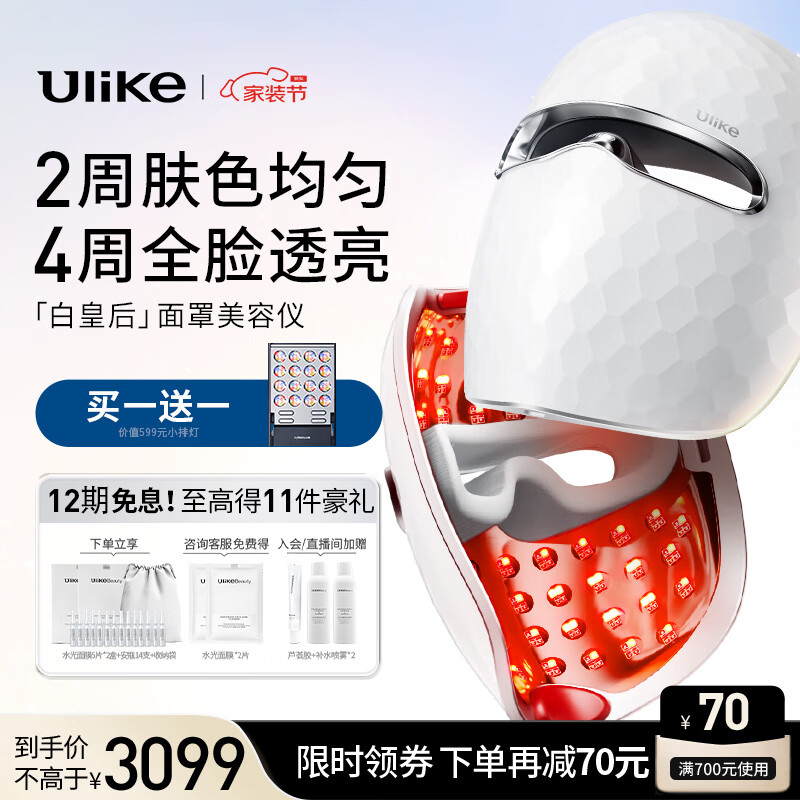 Ulike白皇后大排灯面罩美容仪 美白脸部面部紧致淡斑焕白淡纹嫩肤 教师节生日礼物送女友价格:3799.00元!