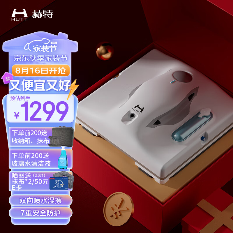 赫特HUTT擦窗机器人W8全自动智能喷水干湿两用电动擦玻璃机器人擦玻璃神器超薄擦窗户机器人蜘蛛人价格:1199.00元!