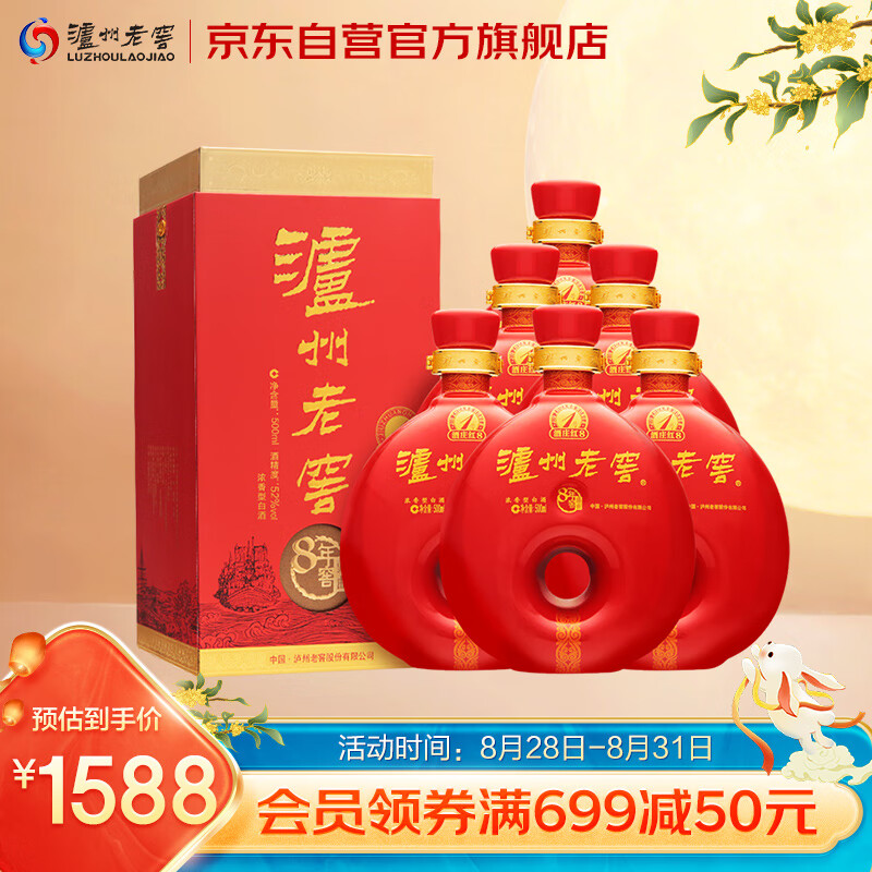 泸州老窖 八年窖头曲 酒庄红八1号 浓香型白酒 52度500ml*6瓶 整箱装价格:1588.00元!