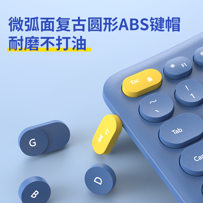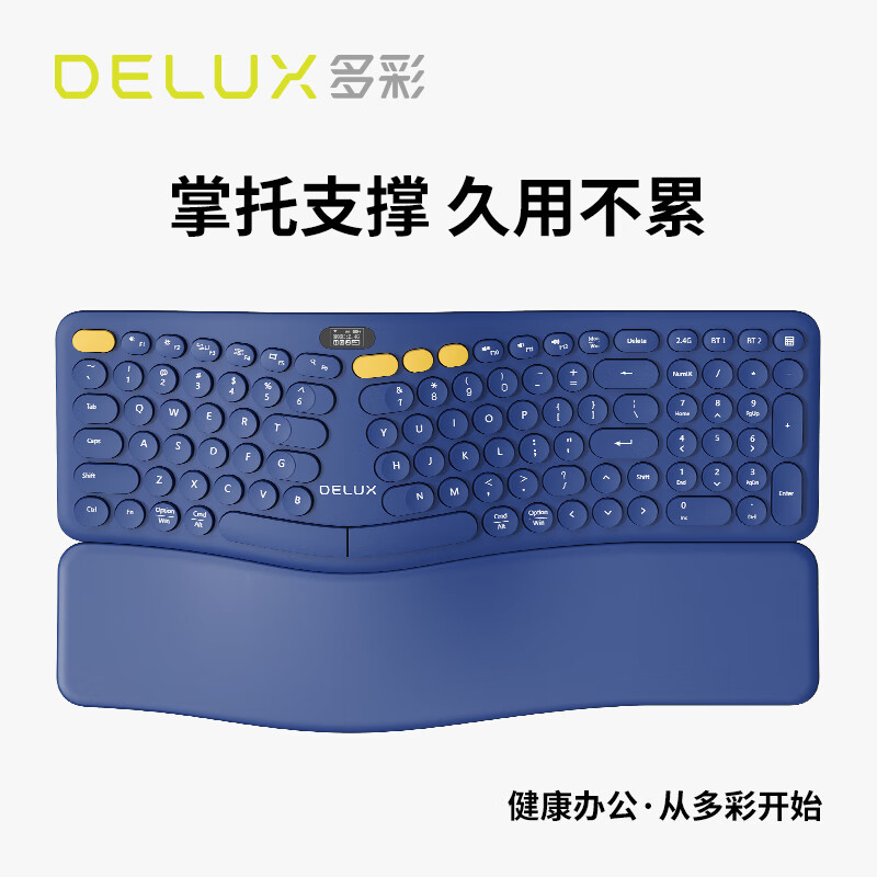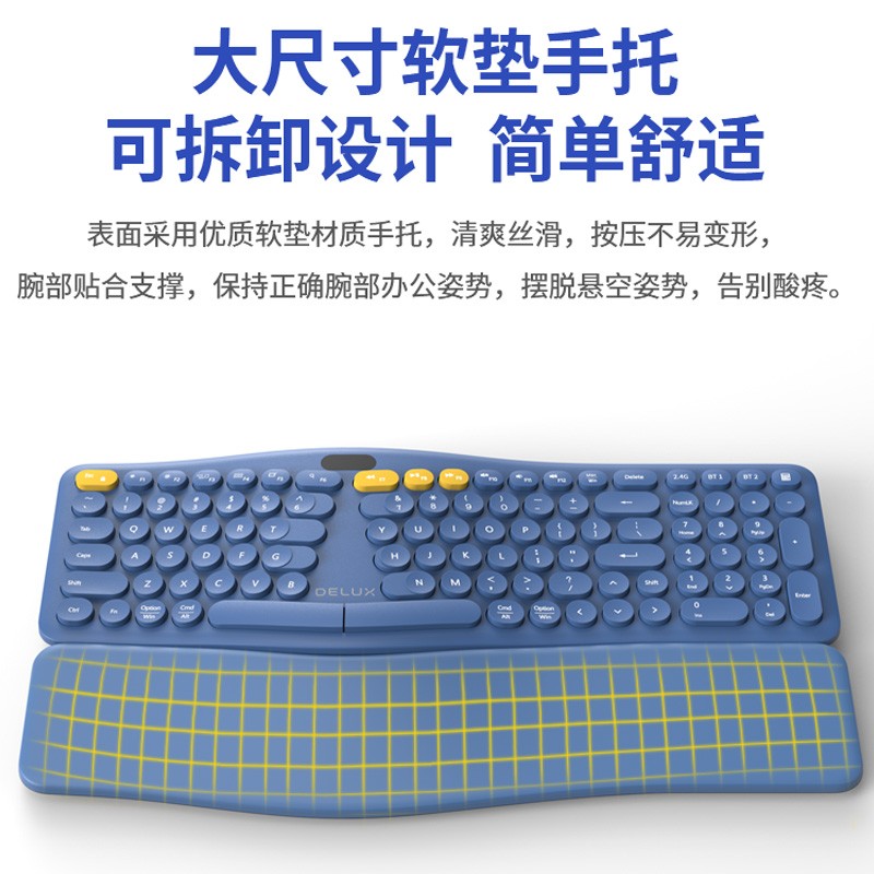 多彩(DeLUX)GM903键盘 人体工学键盘 蓝牙无线键盘 拱形键盘 圆形按键 软垫掌托 蓝色价格:259.00元!