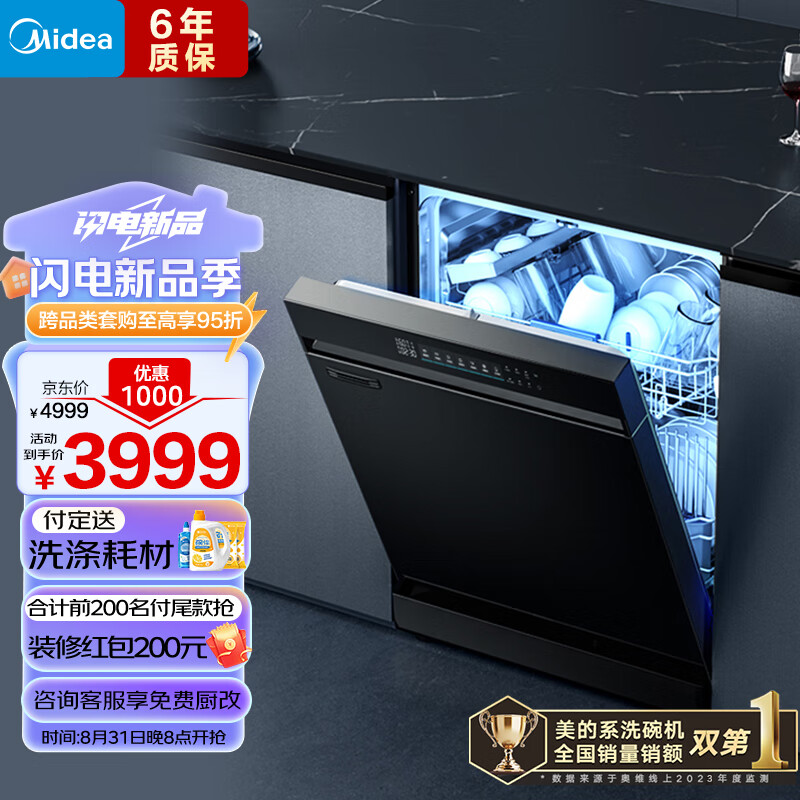美的(Midea)14套嵌入式洗碗机 RX600Pro 升级105℃热风烘干+升降碗篮 一级水效 三星消毒 分层洗 独立式两用价格:4299.00元!
