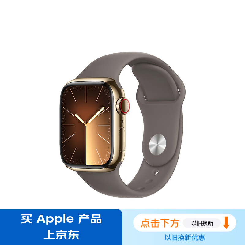 Apple/苹果 Watch Series 9 智能手表GPS+蜂窝款41毫米金色不锈钢表壳陶土色运动型表带S/M MRJW3CH/A价格:5799.00元!