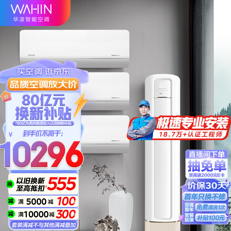 华凌空调新一级 3匹大出风口变频柜机 KFR-72LW/N8HB1A +新一级1.5匹变频挂机KFR-35GW/N8HL1Pro*3价格:10396.00元!