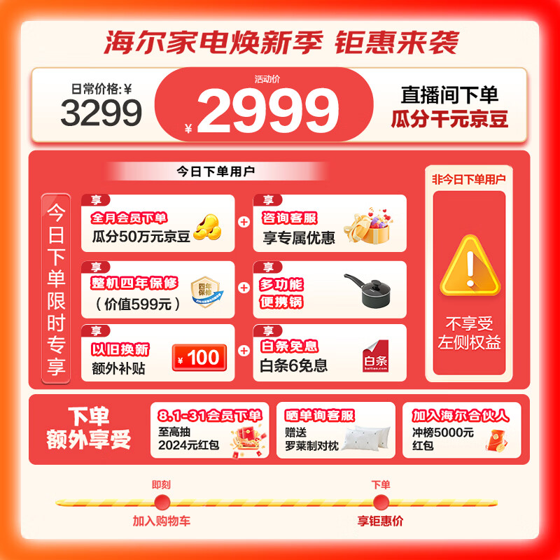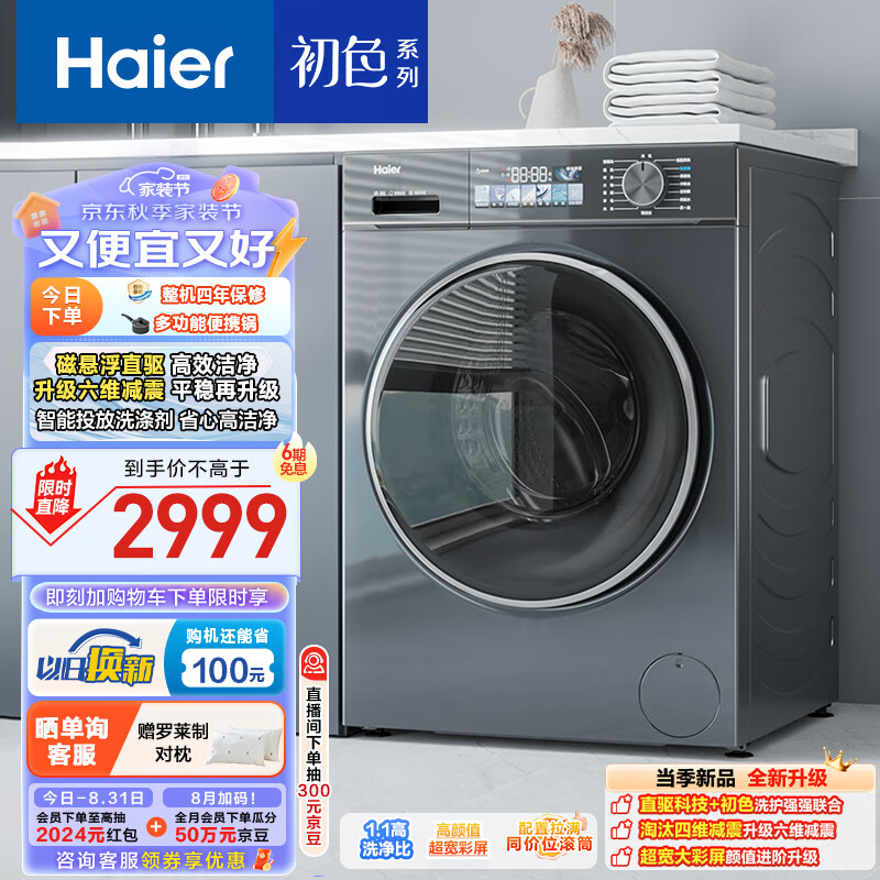 海尔(Haier)滚筒洗衣机全自动单洗 初色超薄 10公斤大容量【直驱EG100BD88PLUS】一级能效 内衣洗 以旧换新价格:2999.00元!