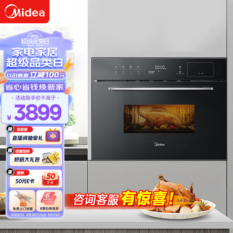 美的(Midea)R3J嵌入式微蒸烤一体机 APP操控微波炉蒸箱烤箱34L 家用多功能烘焙多重自净 京东小家BG3405W价格:3899.00元!
