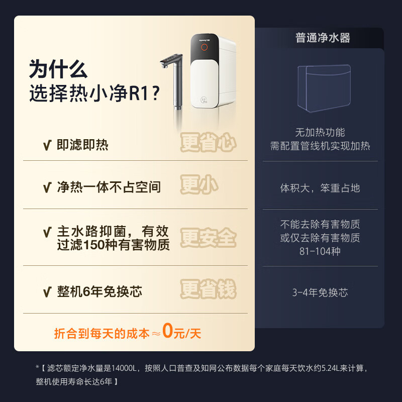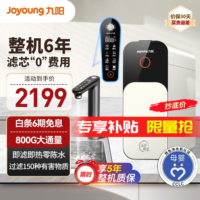 九阳(Joyoung)热小净 800G 加热净水器2.05L/min大流速即热净水机TDS双数显厨下式家用RO反渗透过滤器直饮机R1价格:2399.00元!